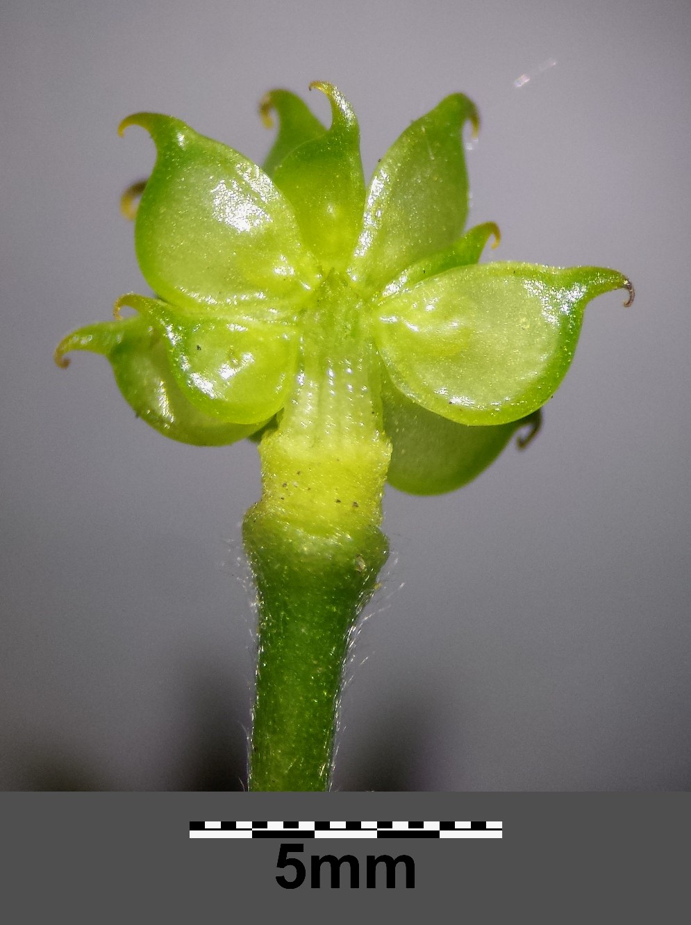 Kelchblätter anliegend, Blütenstiele rund, dicht abstehend weichhaarig