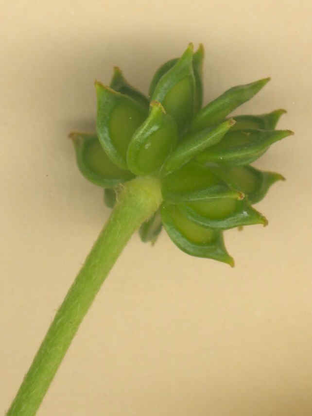 kugelig, Blütenboden kahl, Frucht stark seitlich zusammengedrückt
