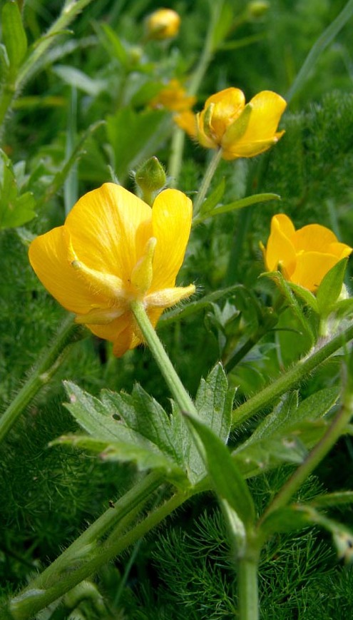 Ranunculus - Blüten gelb, meist mit 5 Kronblättern, Kelchblätter anliegend, Blätter gelappt oder fiederteilig, Frucht seitlich zusammengedrückt, Blütenstiel gefurcht, Abschnitte der Grundblätter +/- tief eingeschnitten, Mittelabschnitt des Endfiederchens nicht gestielt höchstens zu 1/3 eingeschnitten