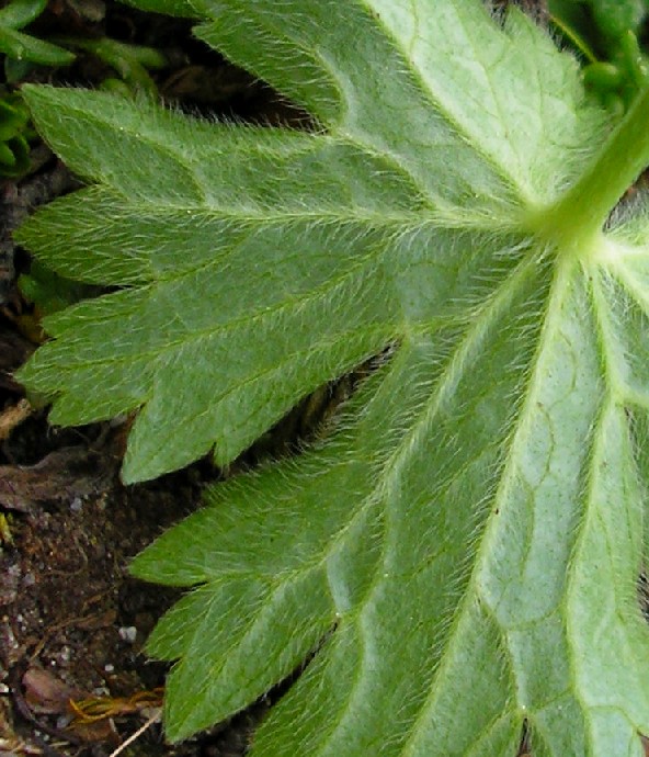 sitzend, Blätter gelappt, Frucht seitlich zusammengedrückt, Stängel kahl oder anliegend behaart,