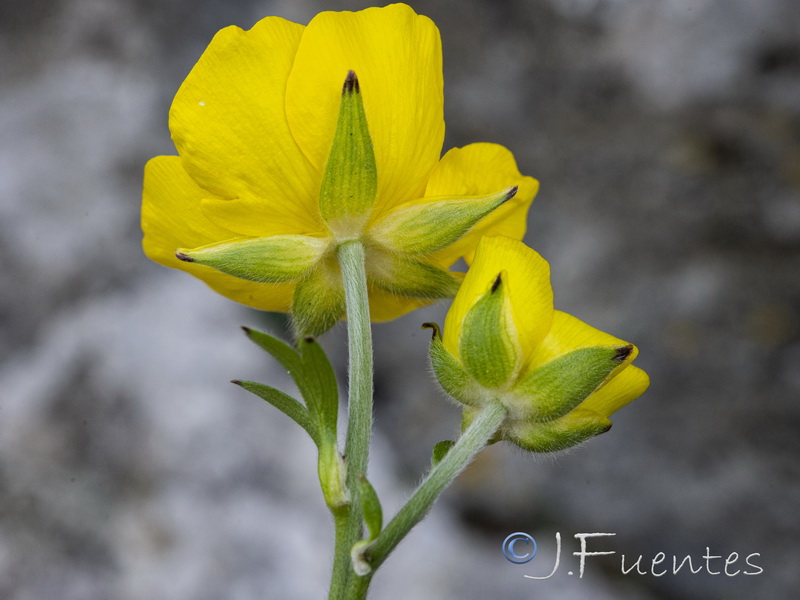 Blüten gelb, bis zu 40 mm im Durchmessser, mit 5 Kronblättern,