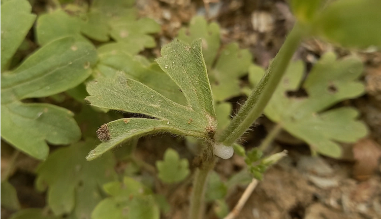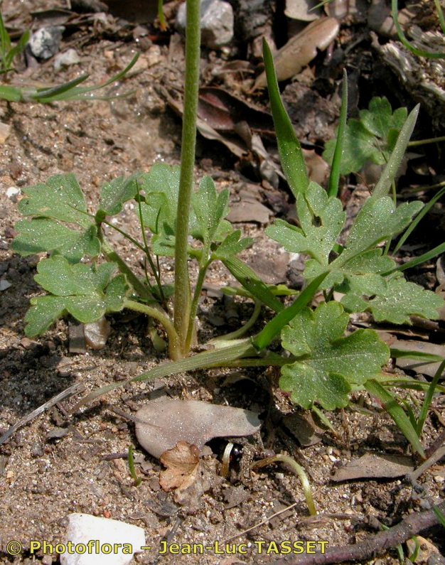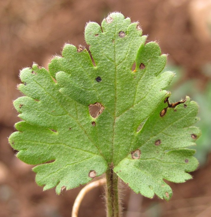 Grundblätter meist länger als breit, 3- lappig, am Grund herzförmig, angedrückt behaart
