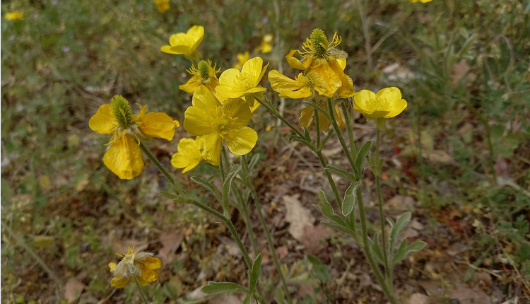- Blüten gelb, Kelchblätter zurückgeschlagen, Blütenstiel und Stängel rund,