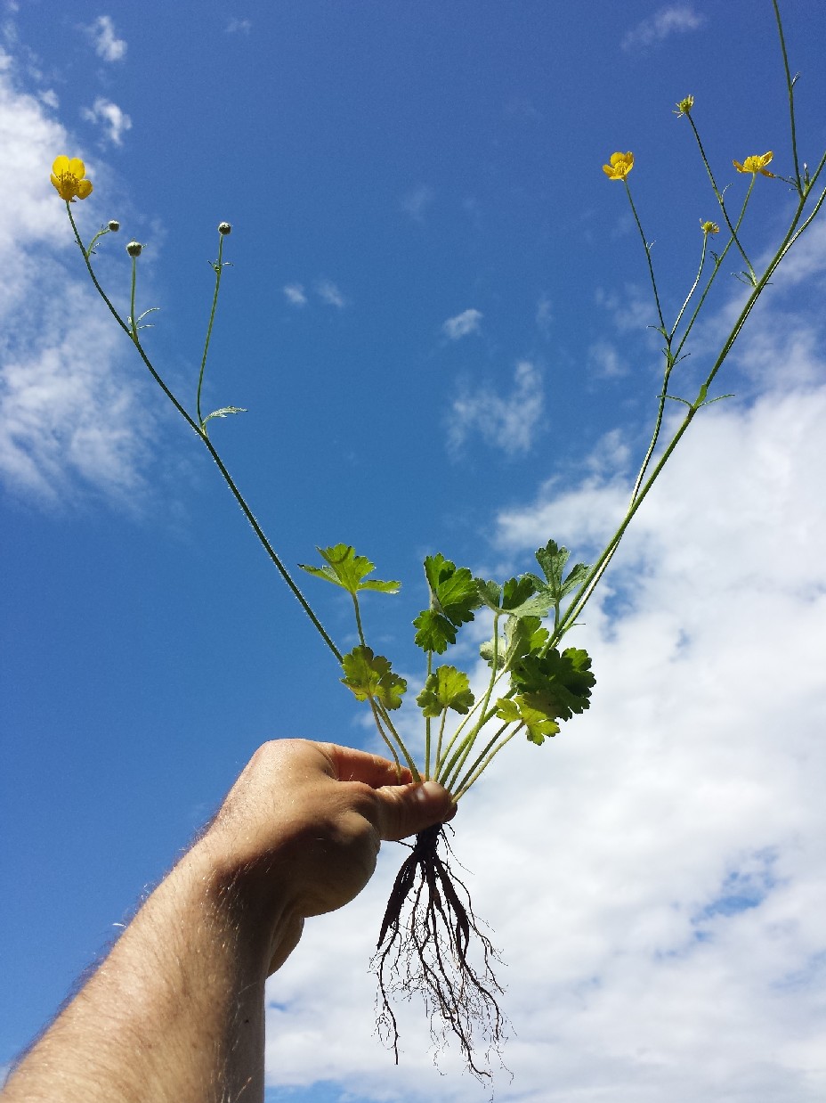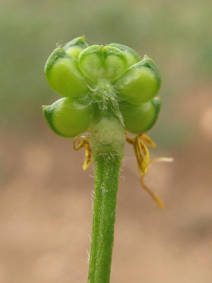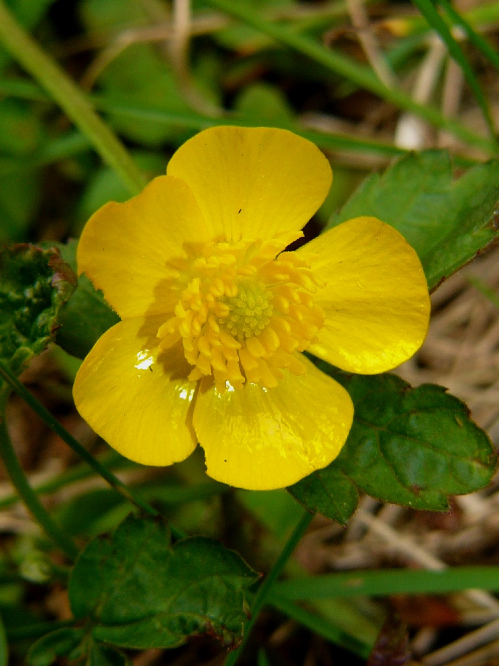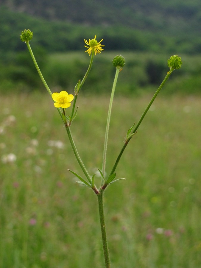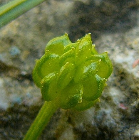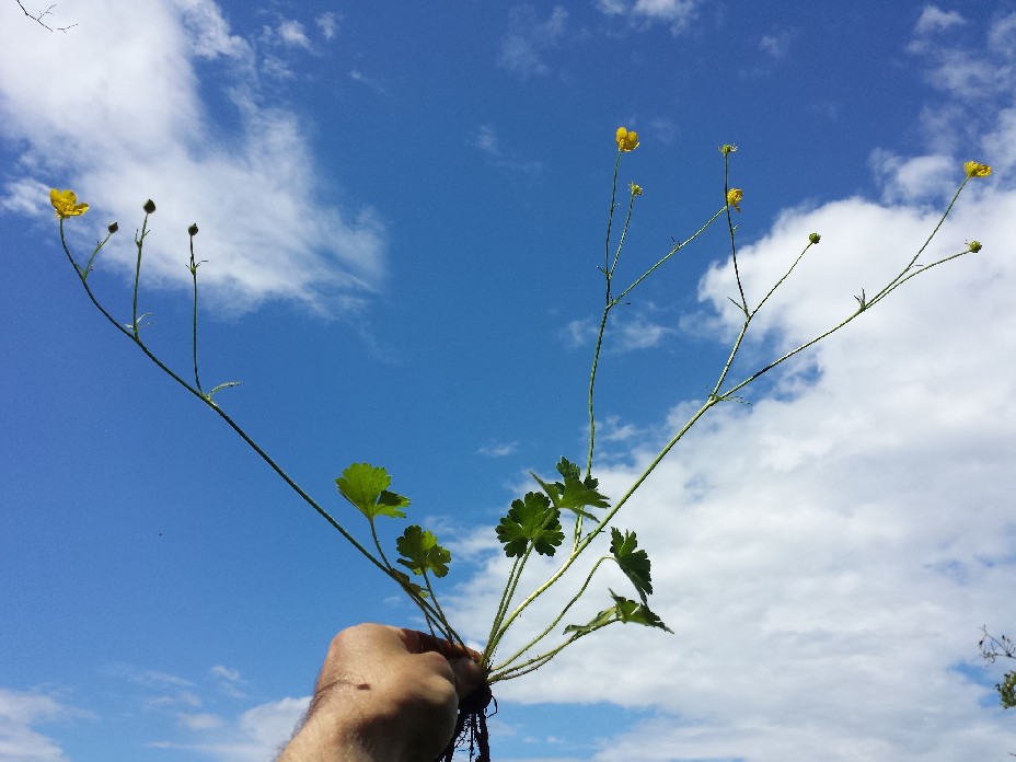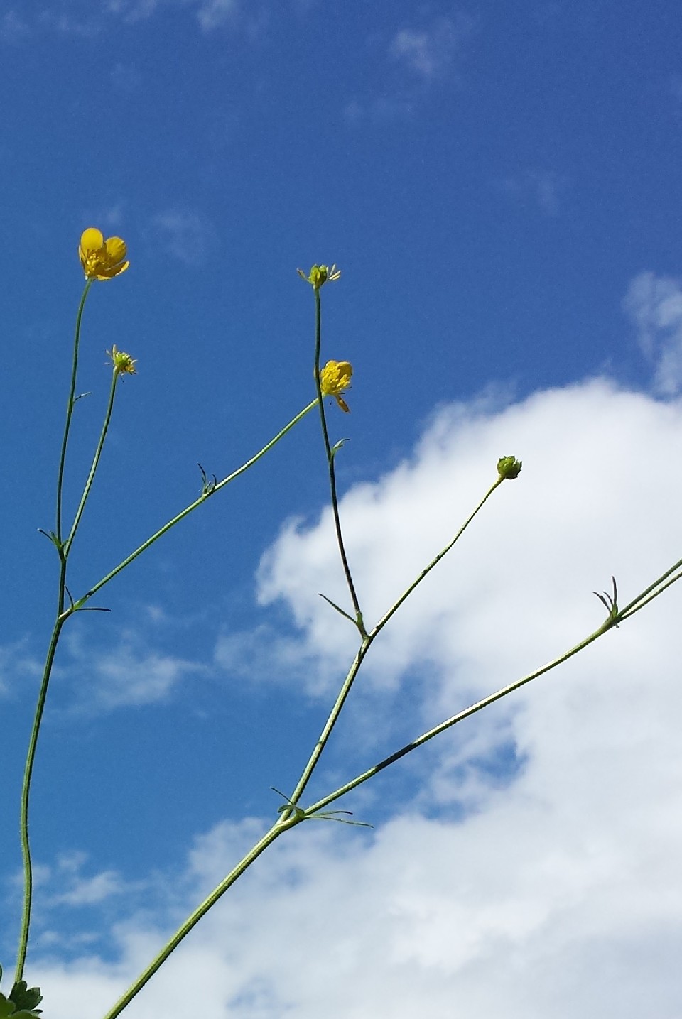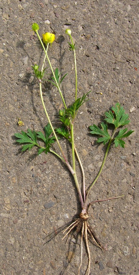 Hahnenfuß - Blüten gelb, Blütenboden kaum erhöht, Kelchblätter zurückgeschlagen, Früchte auf der Fläche glatt, kurz geschnäbelt, Blütenstiel oder Stängel gefurcht, Grundblätter 3- teilig oder tief 3- lappig