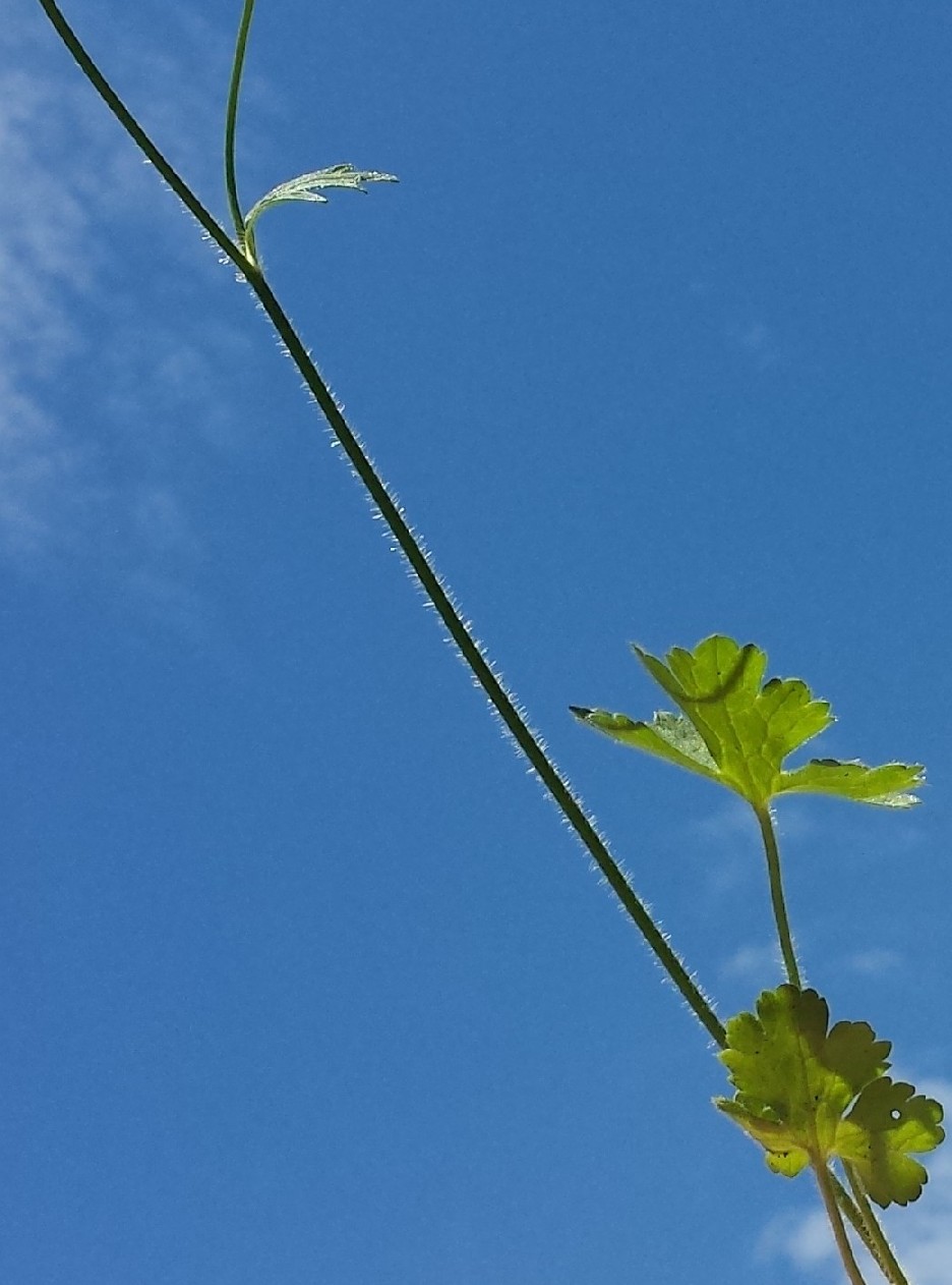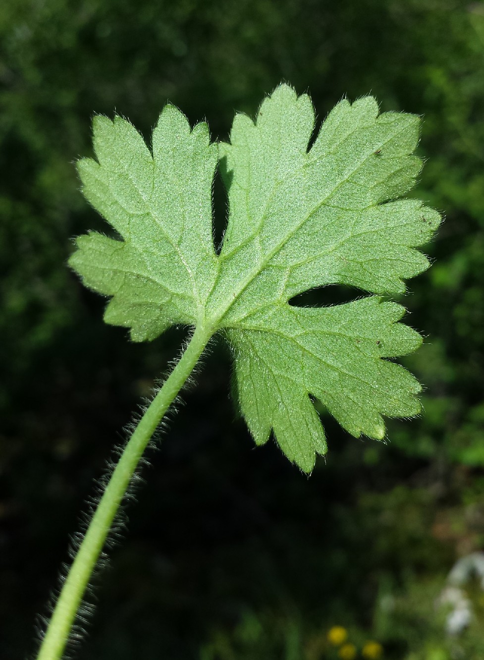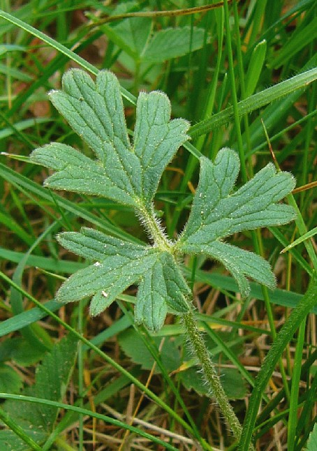 Stängel im mittleren und unteren Teil angedrückt behaart Untere Stängelblätter mit breiten gelappten Abschnitten Untere Stängelblätter und Grundblätter dreiteilig, Mittellappen nicht gestielt