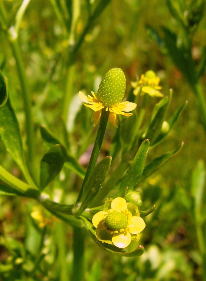 Hahnenfuß - Blüten gelb, Kelchblätter zurückgeschlagen, Blätter gelappt oder gefiedert, Früchte kurz geschnäbelt, Blütenstiel oder Stängel gefurcht
