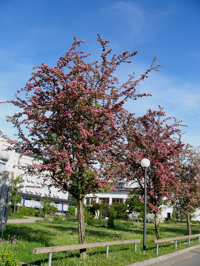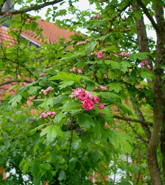 V, Zierpflanze Synonyme: English name: Weltweite Verbreitung: Als Rotdorn werden die rotblühenden Formen von C. laevigata, C. monogyna und C. x media (= Bastard aus C. mongyna und C. laevigata) bezeichnet. Häufig haben sie gefüllte Blüten. Die Pflanze ist extrem frosthart und stadtklimafest, weswegen sie häufig innerorts als Straßenbaum gepflanzt wird. Es werden nur wenig Früchte gebildet. |