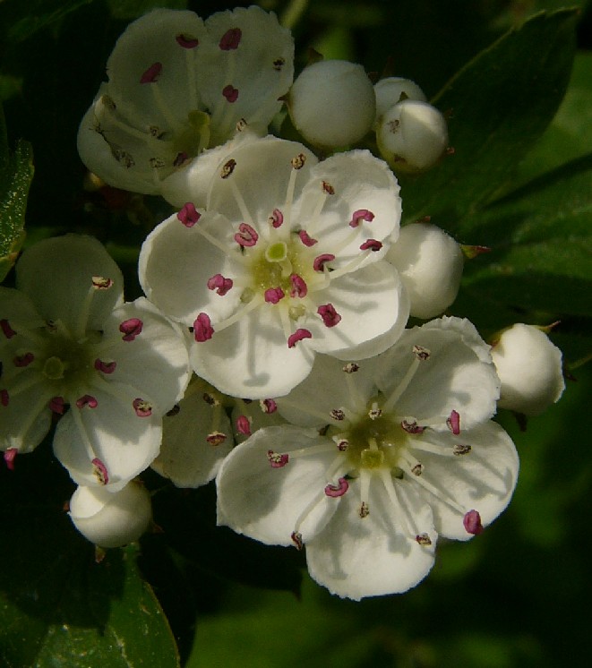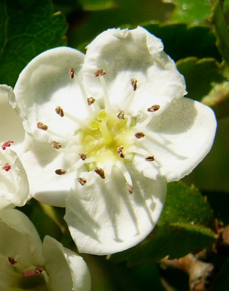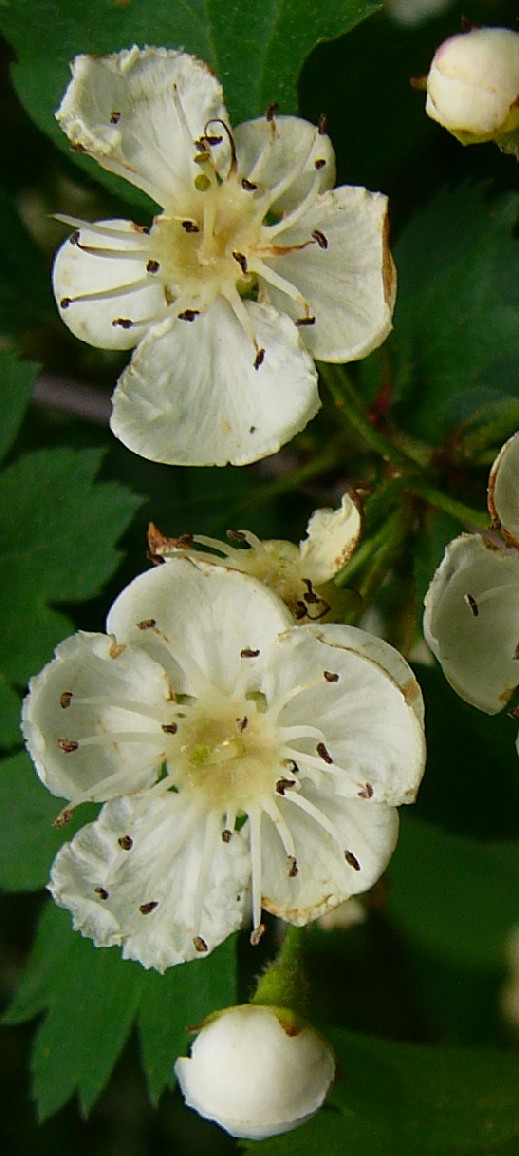Crataegus- Blätter gelappt, oberseits kahl, Blüten weiß