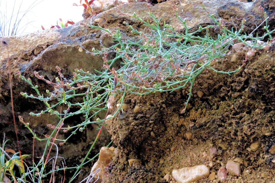 Stängel kahl, blaugrün, +/- fleischig, mittlere Internodien 2 - 3 mal so lang wie die Blätter, obere und mittlere Blätter gegenständig, linealisch- lanzettlich, 7 - 20 mm lang, 1 - 2,5 mm breit, blaugrün, kurz bespitzt