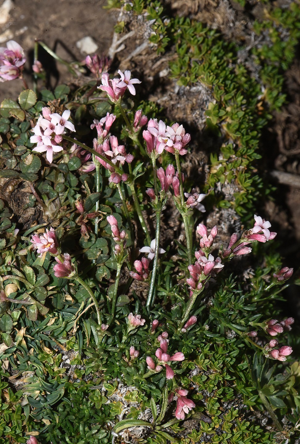Blüten außen rosa,innen weiß, 3 - 6 mm lang, behaart, 4 spitze Kronzipfel