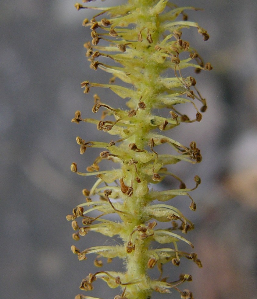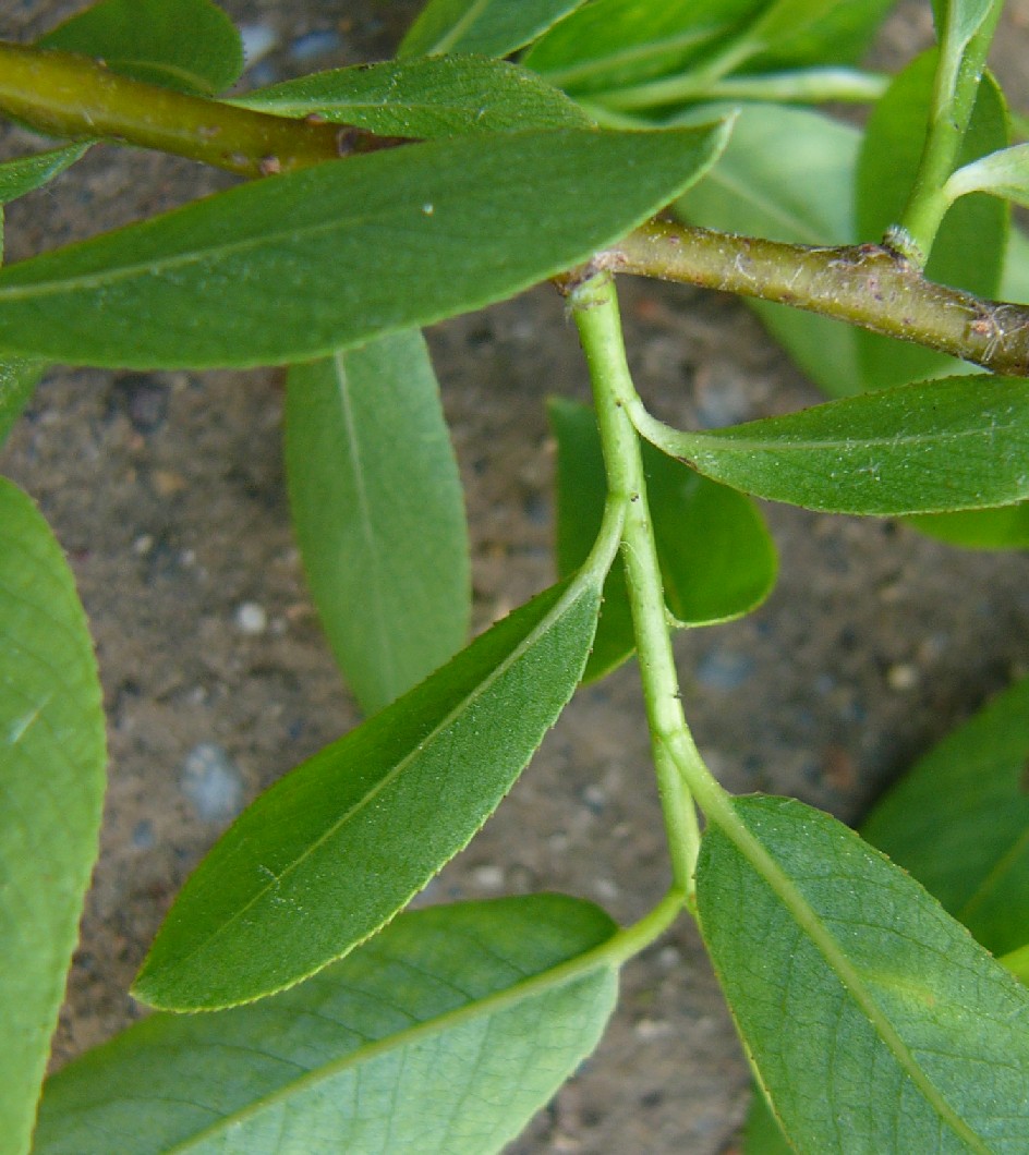 Salix - Bis 35 m hohe Bäume, Zweige aufrecht, nicht bläulich- weiß bereift, Deckblätter