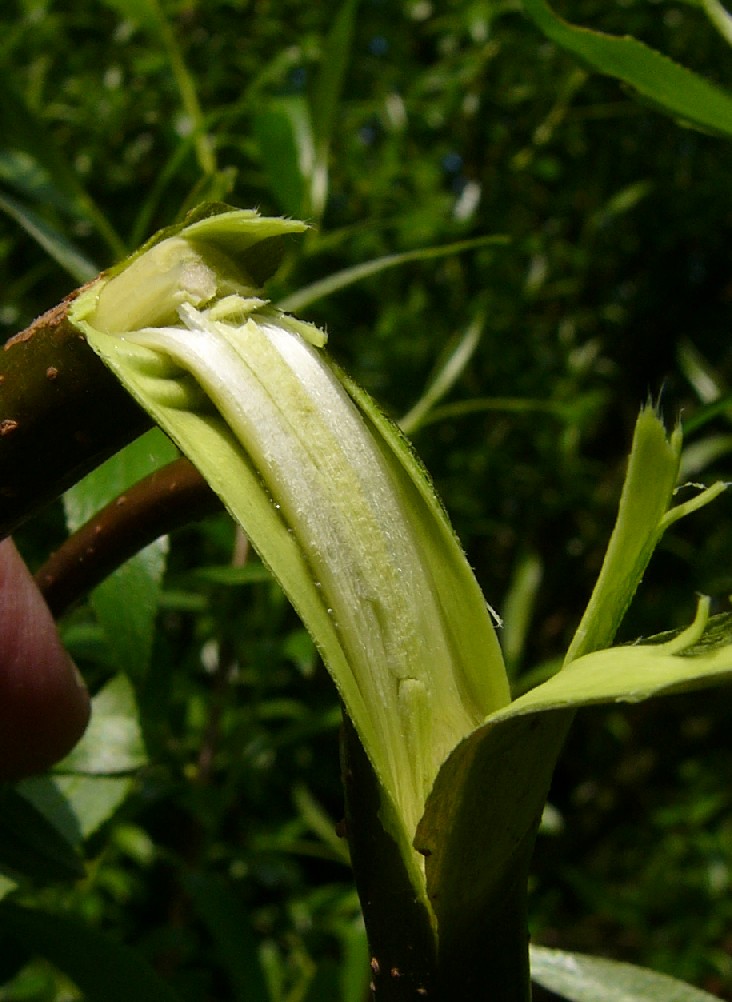 verkahlend, Nebenblätter sehr klein Entrindetes Holz ohne Striemen