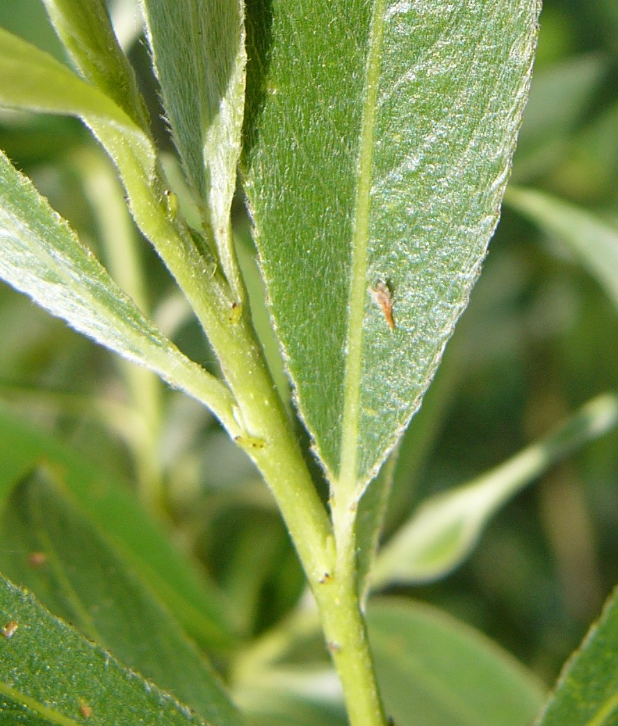 Blattvergleich Salix alba (links) und Salix x rubens (rechts)