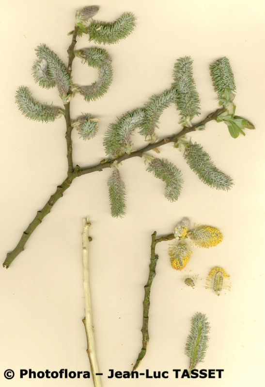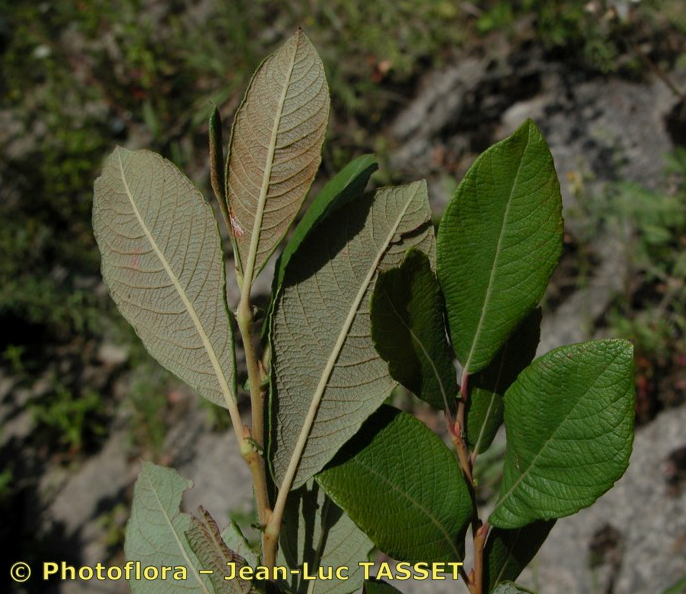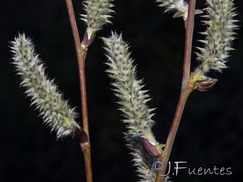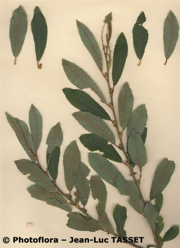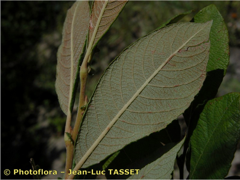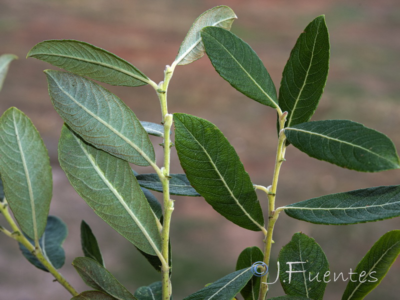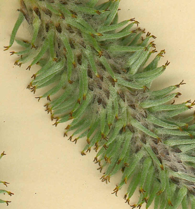 Salix - Bäume oder Sträucher > 2 m, Zweige aufrecht, nicht bläulich- weiß bereift, Fruchtknoten behaart, Blätter 5 - 10 cm lang, breit lanzettlich, runzlig, unterseits +/- filzig grau und rostbraun behaart, Nebenblätter zumindest teilweise bleibend, Holz mit Striemen