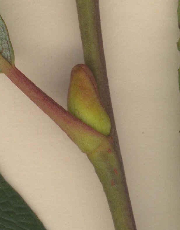 Vorjährige Triebe behaart, rötlich, ältere Triebe