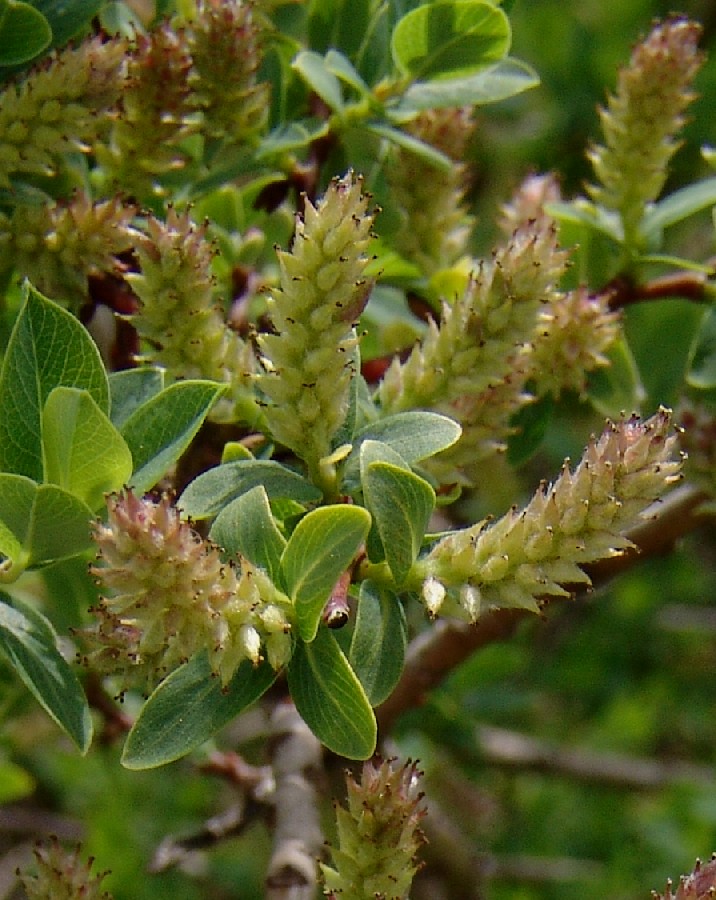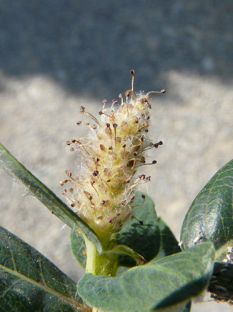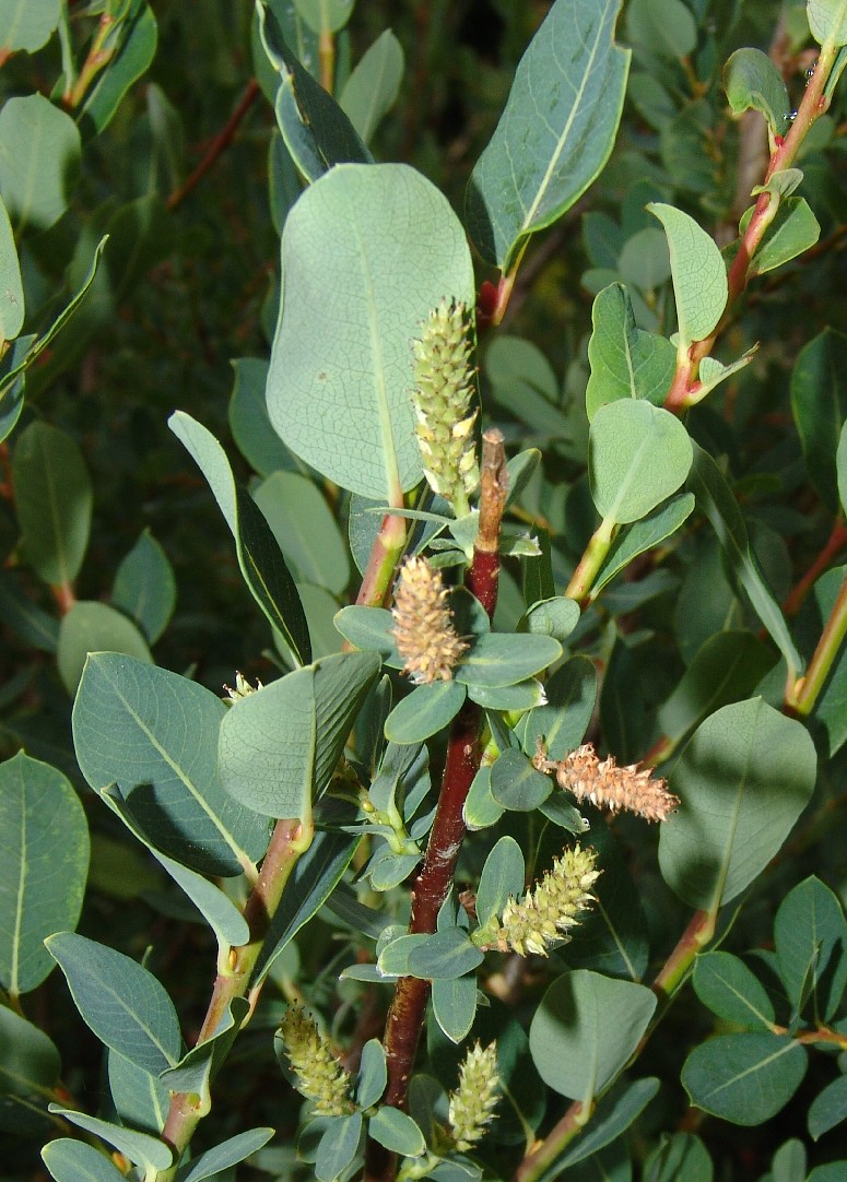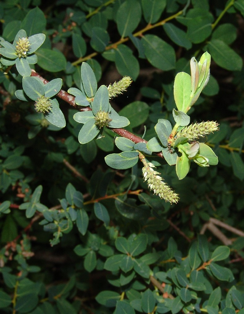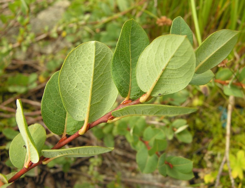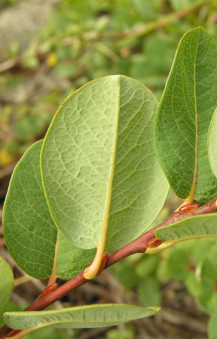 Weiden: Zwergsträucher (maximal 1,5 m groß), Blätter blau, ganzrandig, Blattunterseite kahl
