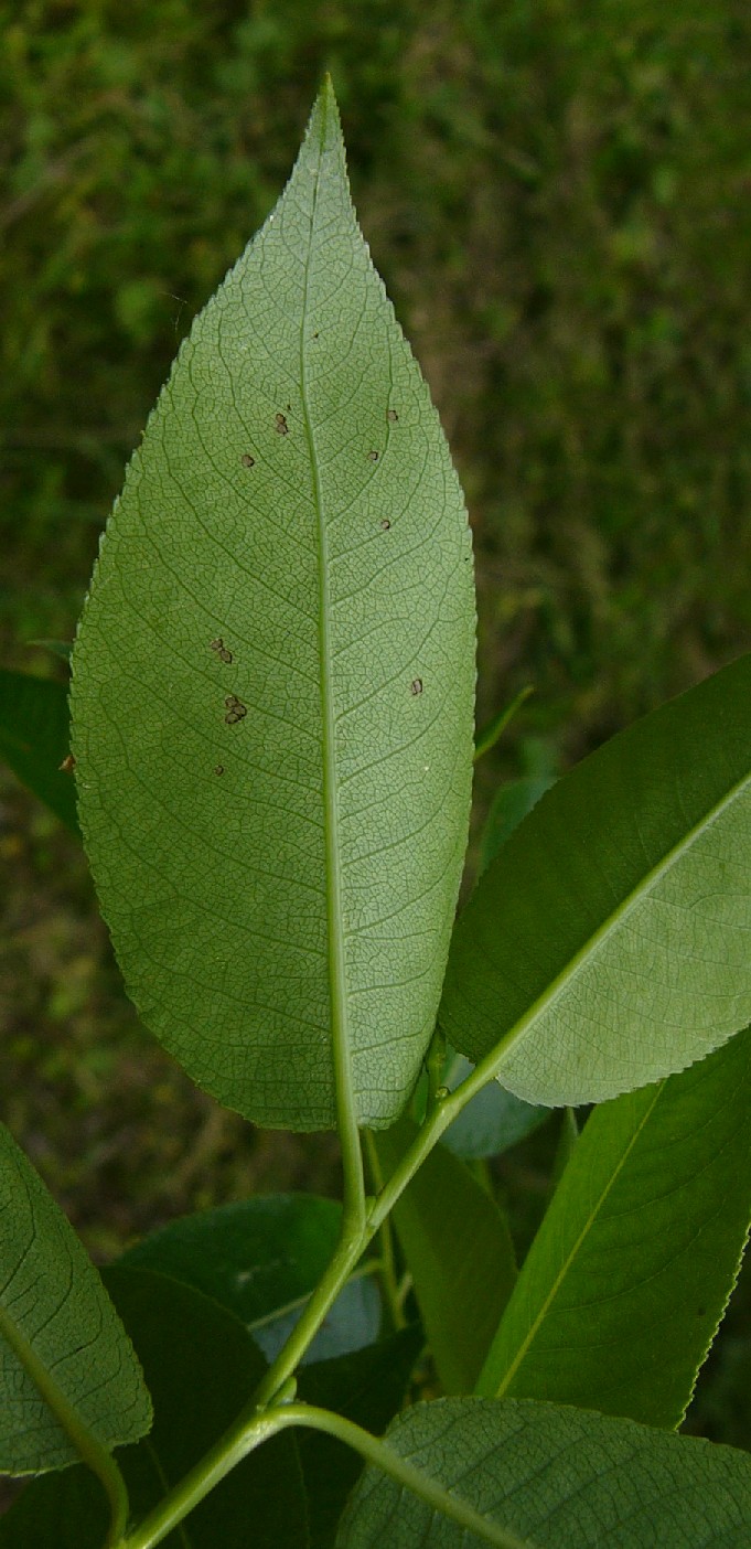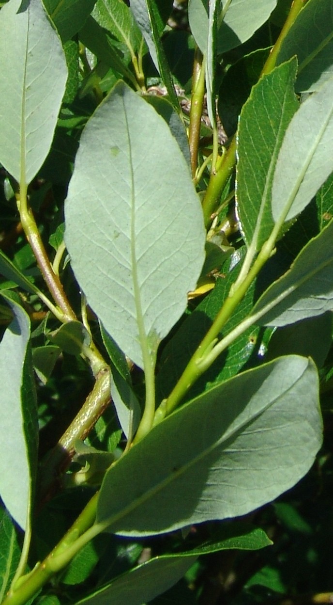 Blätter unterseits blaugrün, mit grüner Spitze > Salix myrsinifolia |