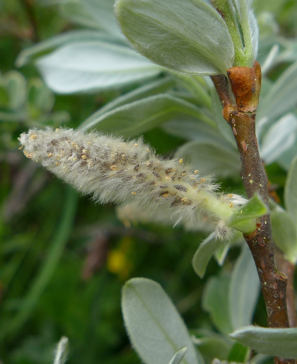 30 - 150 cm großer Strauch Knospen auffällig rötlich, Kätzchen mit den Blättern erscheinend,