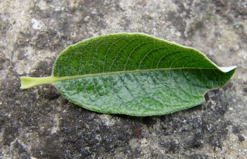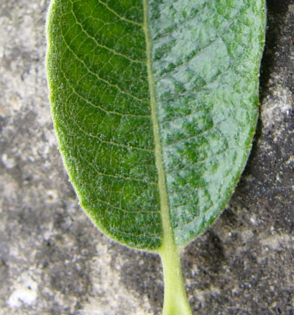 Blätter oberseits grün, +/- anliegend seidig behaart, Blattrand ohne Zähne und Drüsen,