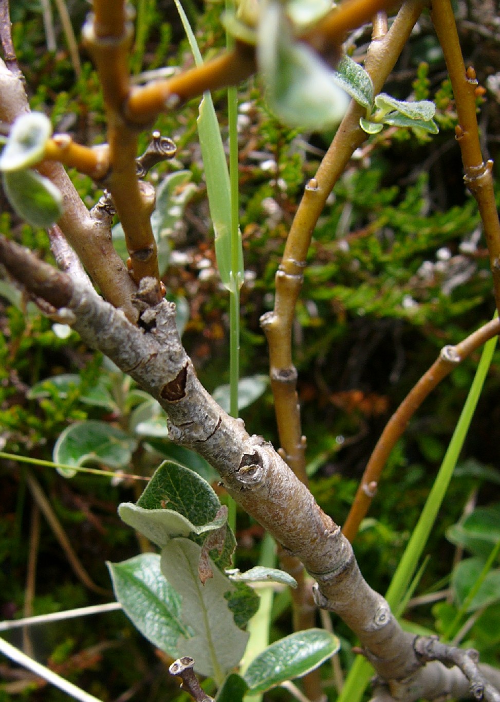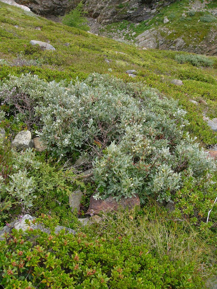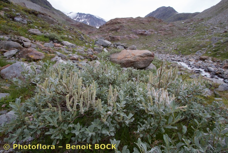 II- V, Alpine Schotterhalden, Bachufer (1800 - 2600 m) Synonyme: English name: Nom francais: Nome italiano: Verbreitung in Deutschland: Gefährdung in Deutschland: Weltweite Verbreitung: Eingebürgert in: Etymologie: In der Publikation "Die Lappland-Weide (Salix lapponum L.) am Feldberg (Schwarzwald) – mit einem Beitrag zur Unterscheidung von Salix helvetica Vill. und S. lapponum L. und der Erstbeschreibung der Hybride Salix appendiculata x lapponum" (2017) von Walter Plieninger & Peter Lutz werden Salix lapponum und Salix helvetica tabellarisch gegenübergestellt. Salix helvetica ist bei