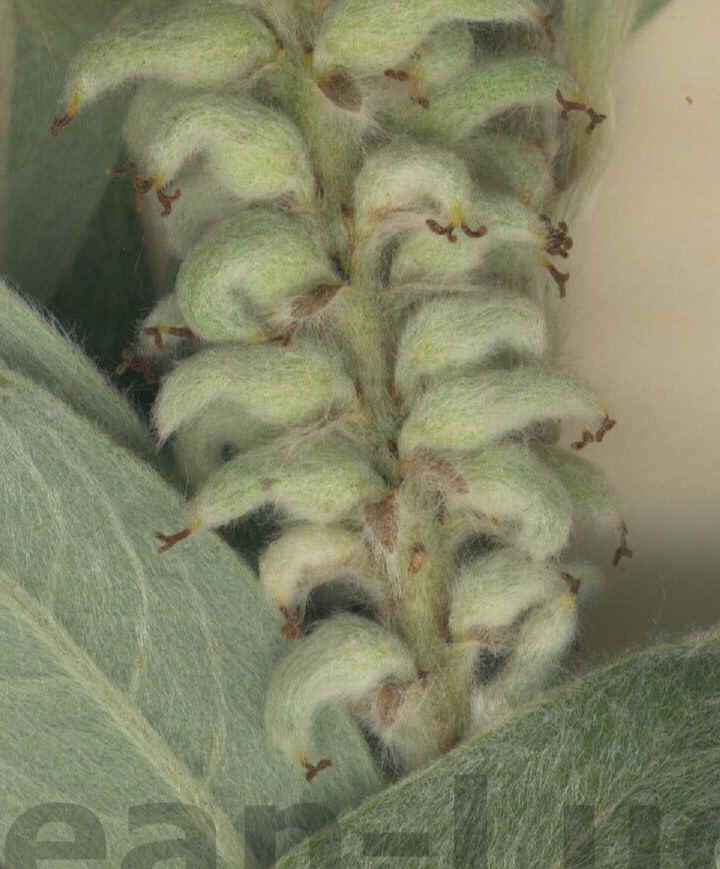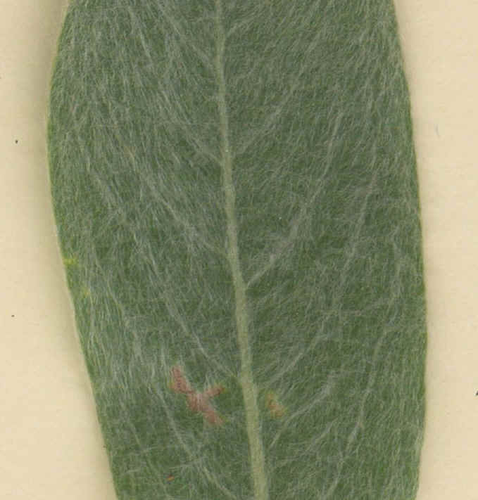 Blätter unterseits blaugrün, dicht angedrückt behaart, seidig glänzend
