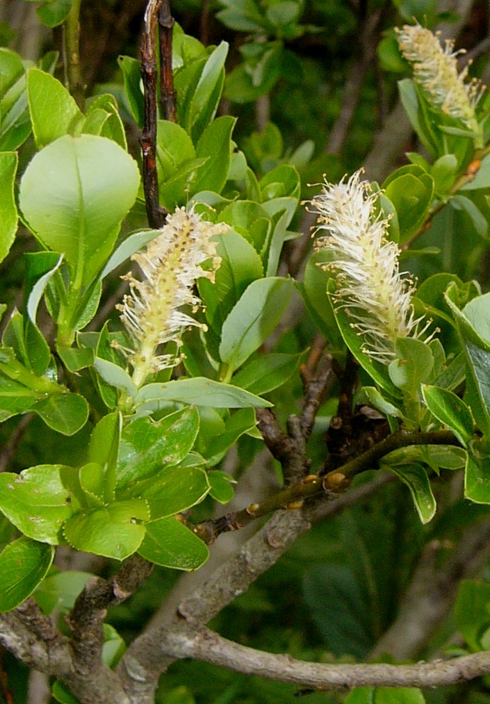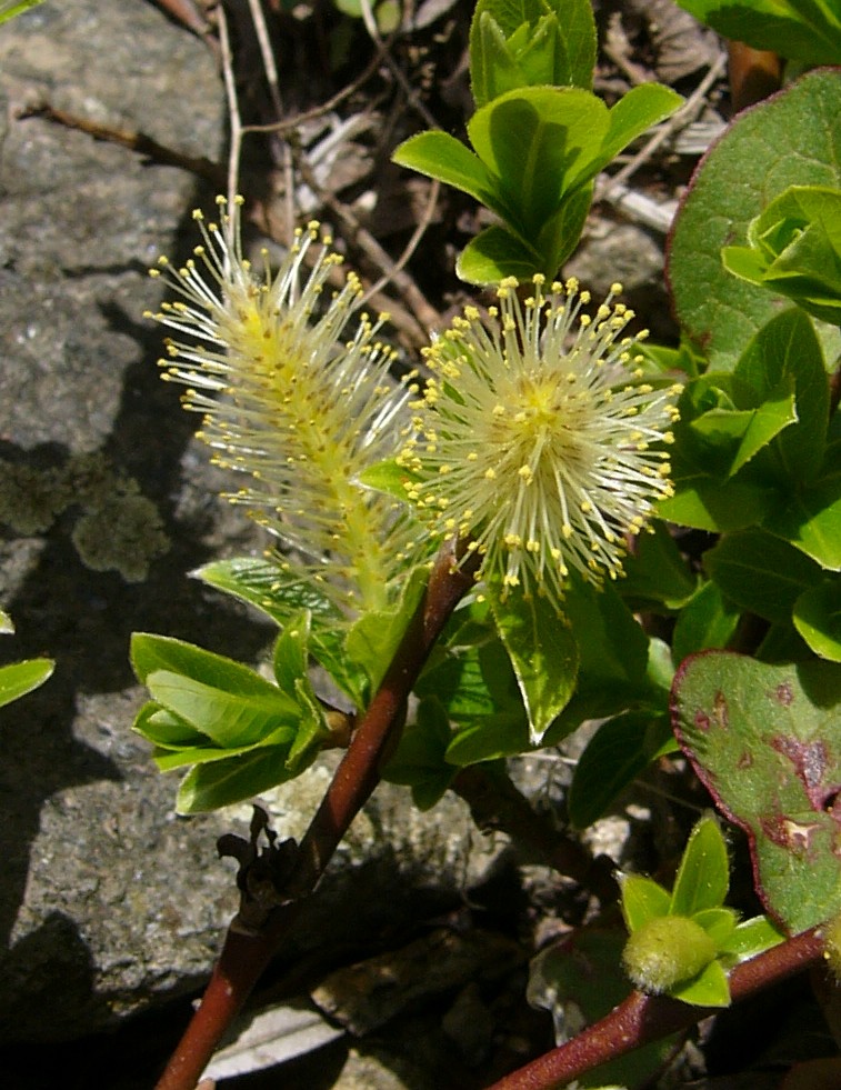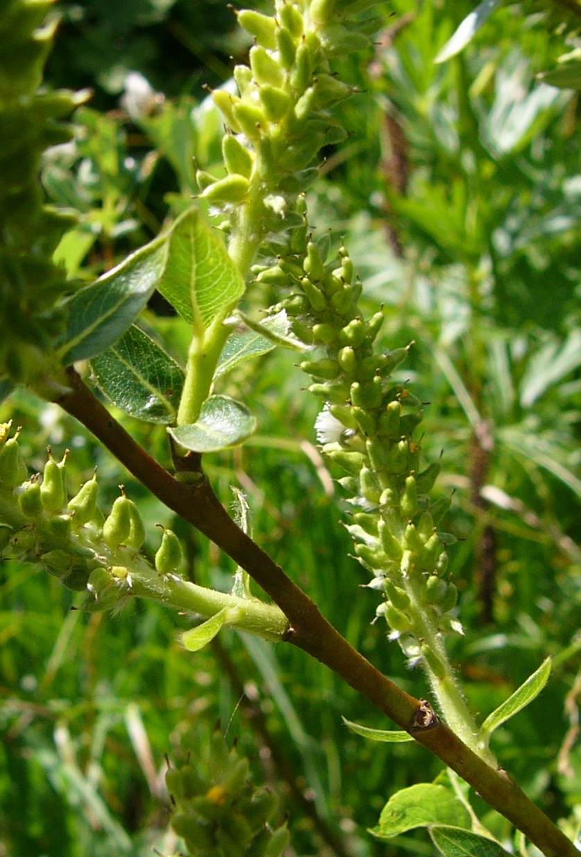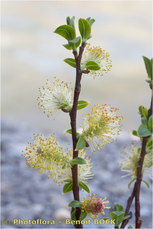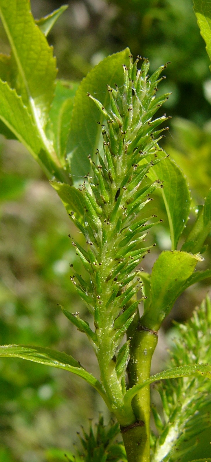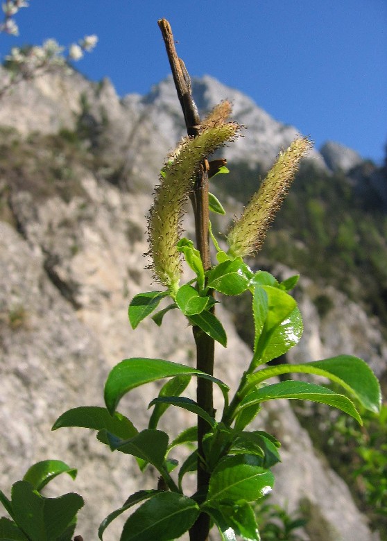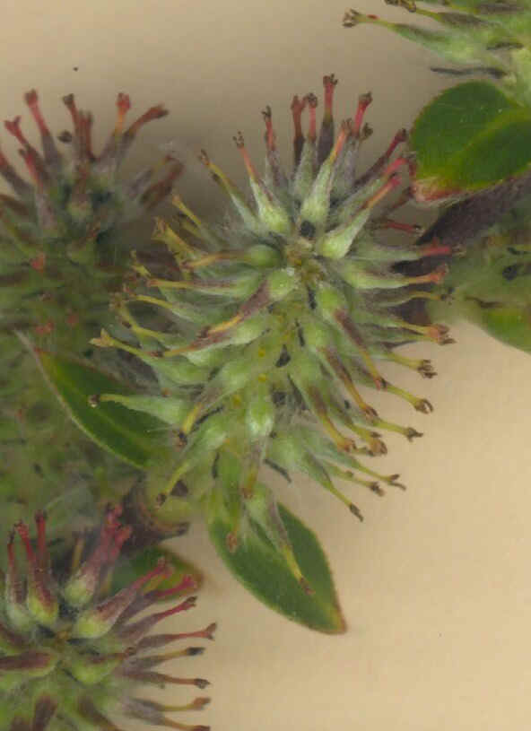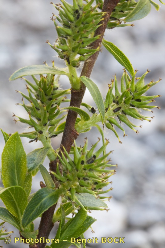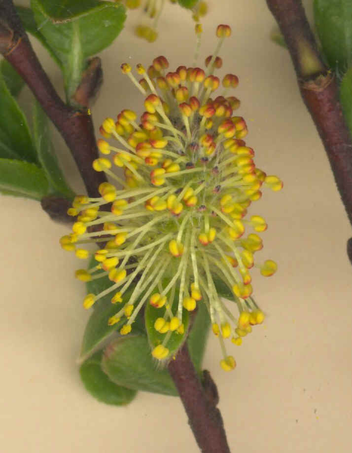 Männliche Kätzchen vor oder mit den Blättern erscheinend, Staubfäden bläulich, kahl Deckblätter gelblich, an der Spitze dunkler, auffällig lang bärtig Griffel lang, Fruchtknoten fast sitzend, behaart Diesjährige Triebe gelbgrün Blätter im Austrieb unterseits flaumig, später kahl
