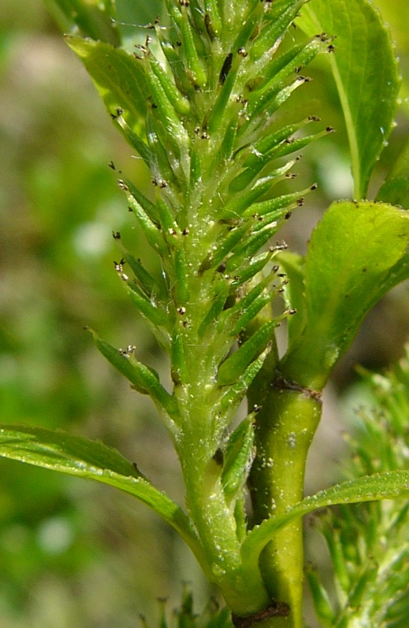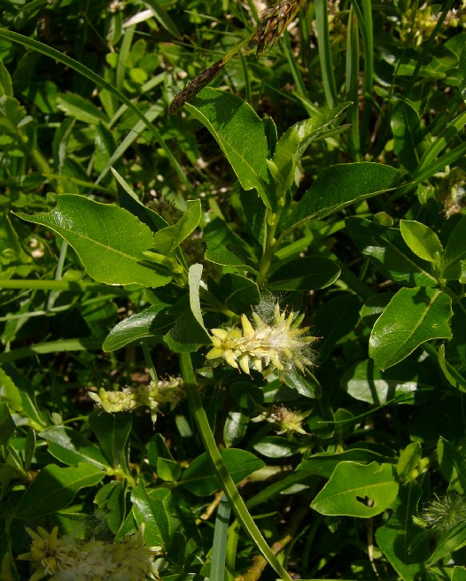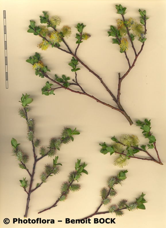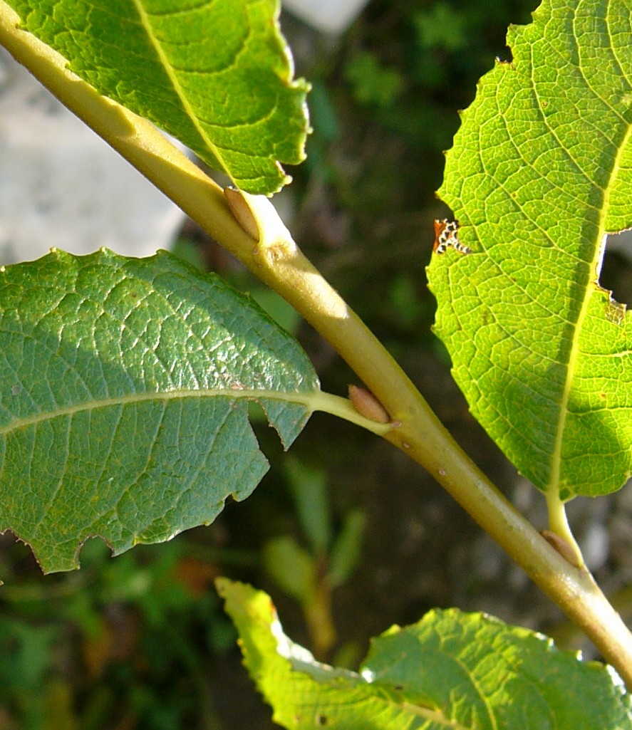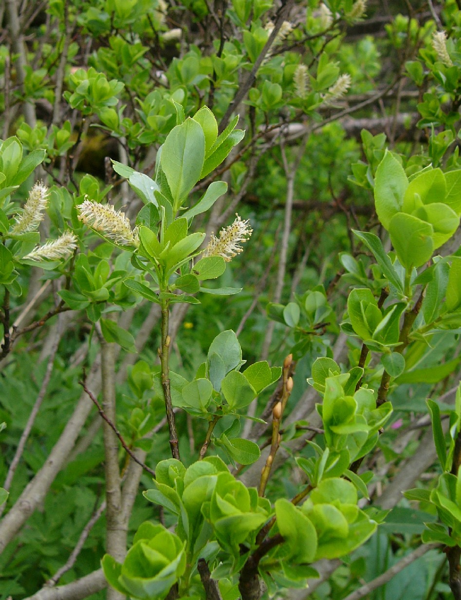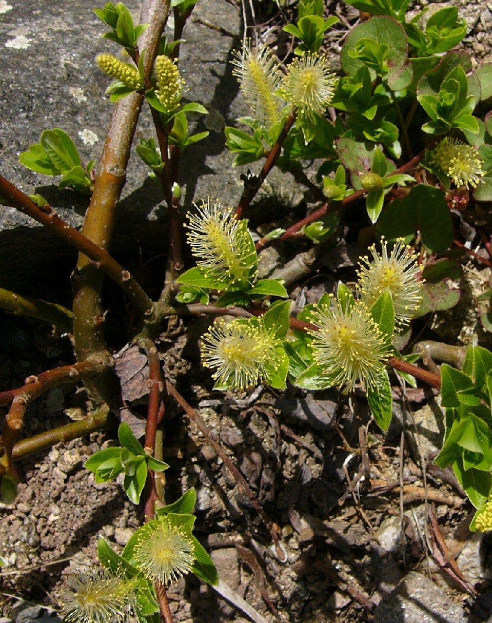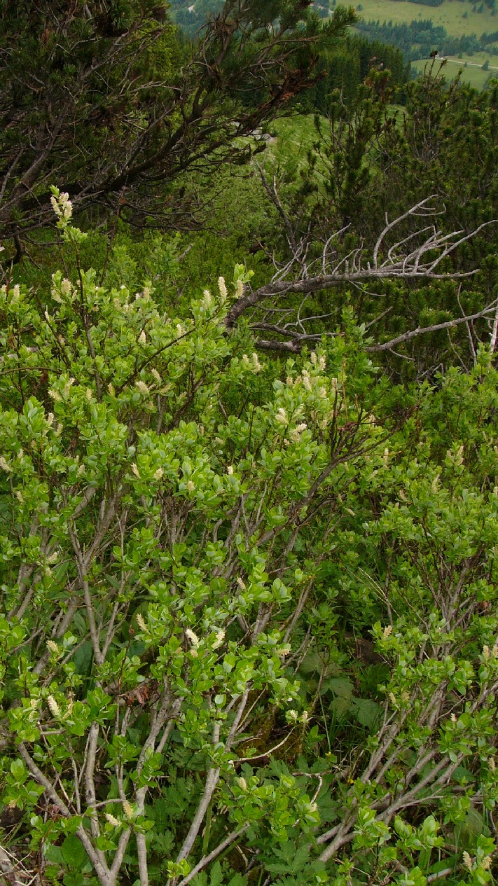 Männliche Kätzchen vor oder mit den Blättern erscheinend, Staubfäden bläulich, kahl Deckblätter gelblich, an der Spitze dunkler, auffällig lang bärtig Griffel lang, Fruchtknoten fast sitzend, behaart Diesjährige Triebe gelbgrün Blätter im Austrieb unterseits flaumig, später kahl