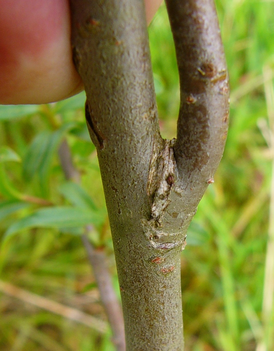 Staubblätttern Nebenblätter an Langtrieben bleibend, ansonsten hinfällig Zweige beim Anlegen an den Leittrieb brechend > Zweige beim Anlegen an den Leittrieb brechend |