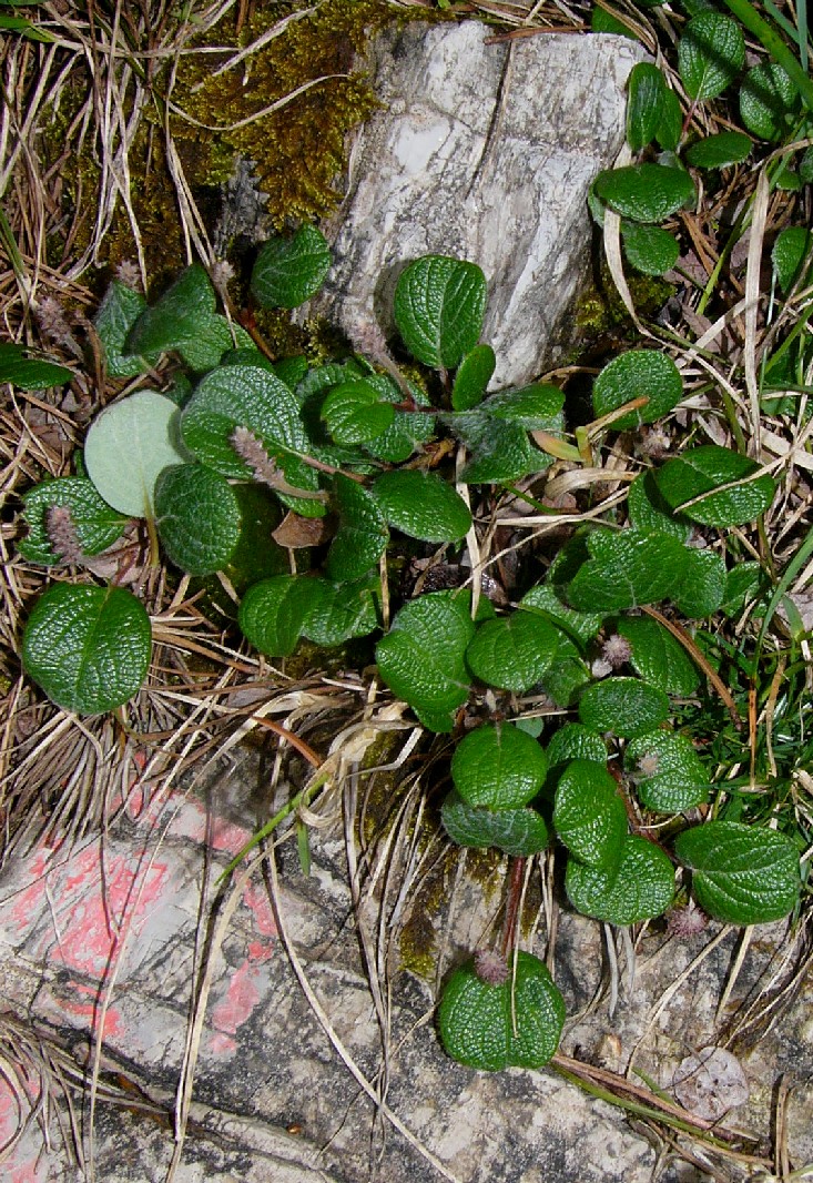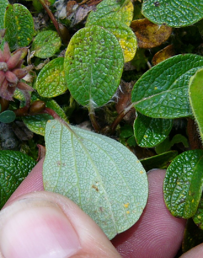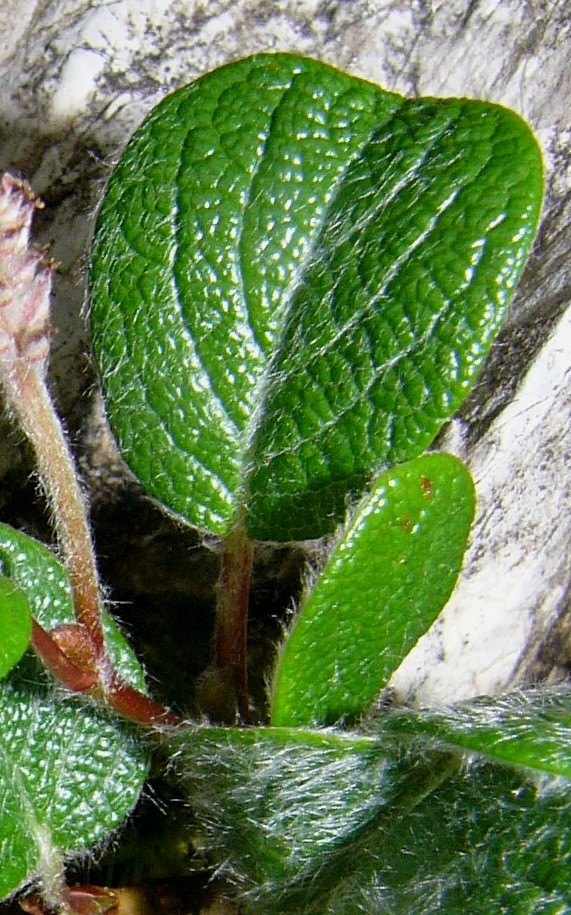 Salix - Kriechende Zwergsträucher, Blätter ganzrandig, stark runzlig, lang gestielt