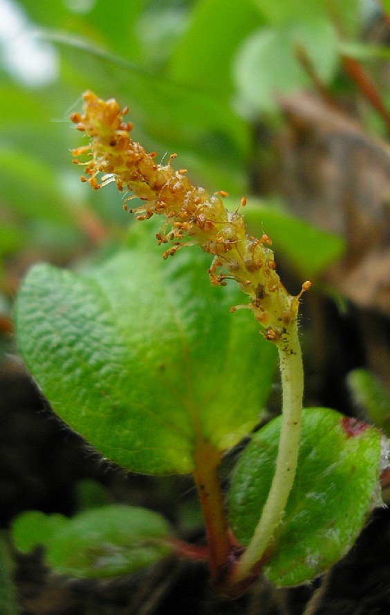 Bis 0,2 m großer Zwergstrauch Männliche Kätzchen länglich, lang gestielt,