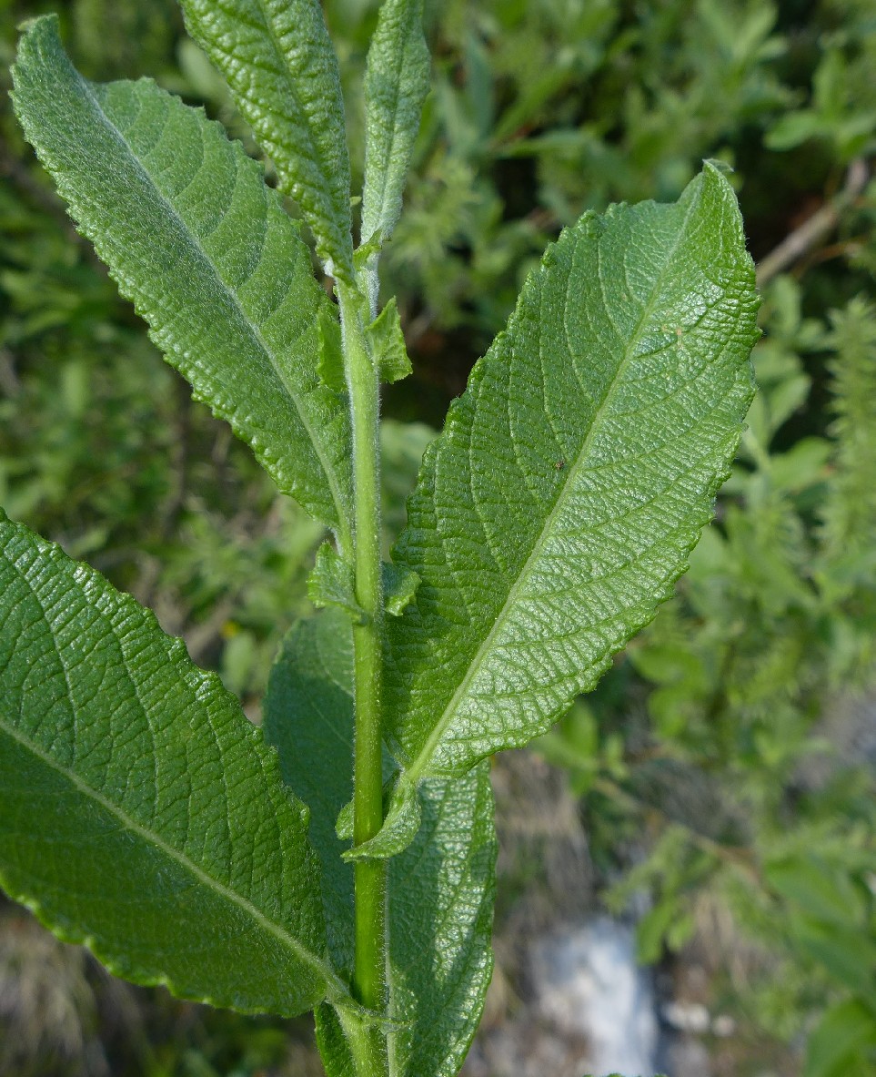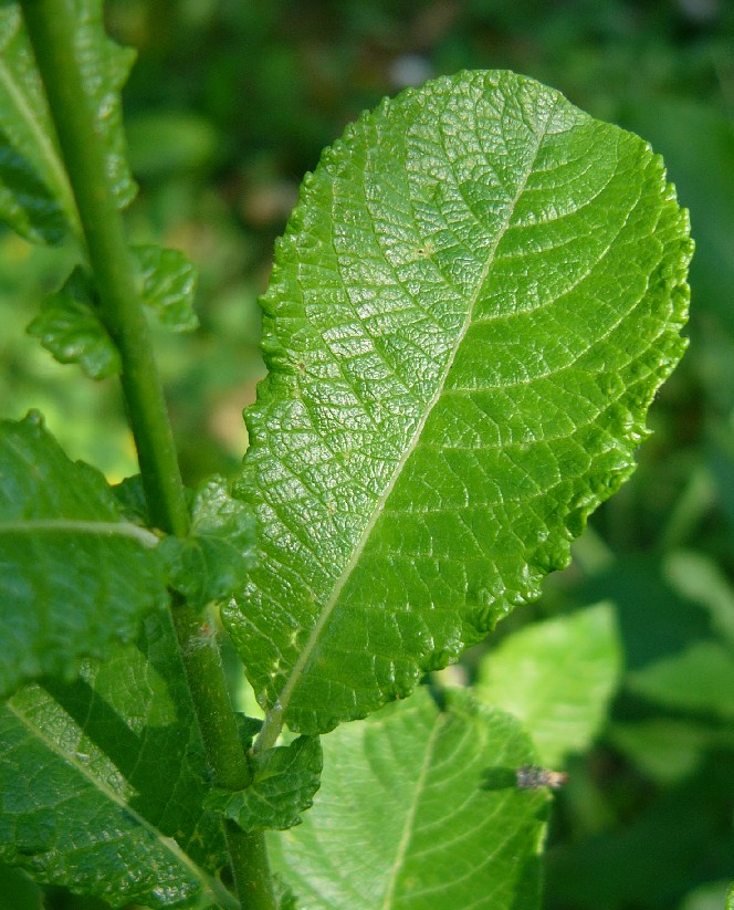 Blätter lanzettlich, runzlig, 3 - 5 mal so lang wie breit, unterseits behaart, Nebenblätter zumindest teilweise bleibend