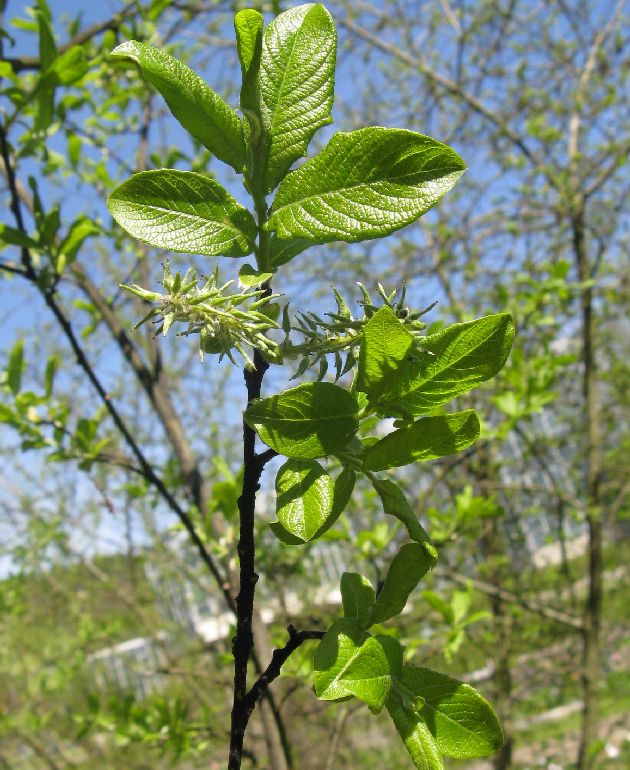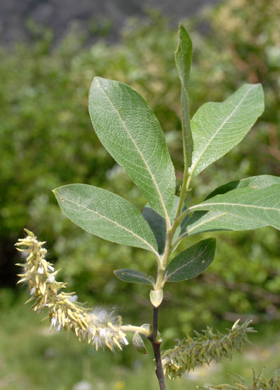 Kätzchen eiförmig, 2 - 3 cm lang, mit dem Laubaustrieb erscheinend