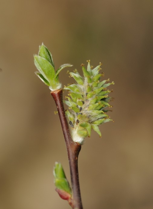 Männliche Kätzchen 2 cm lang, 1 cm breit, mit den Blättern erscheinend,