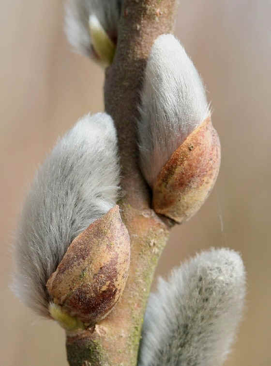 2 - 10 m hoher Strauch, seltener Baum Junge Kätzchen flaumhaarig (= "Palmkätzchen"),