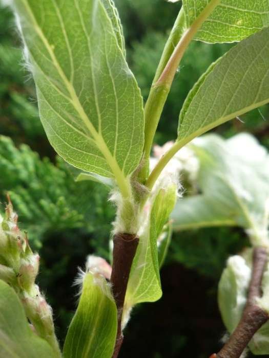 Diesjährige Triebe anfangs dicht seidenhaarig, schnell verkahlend