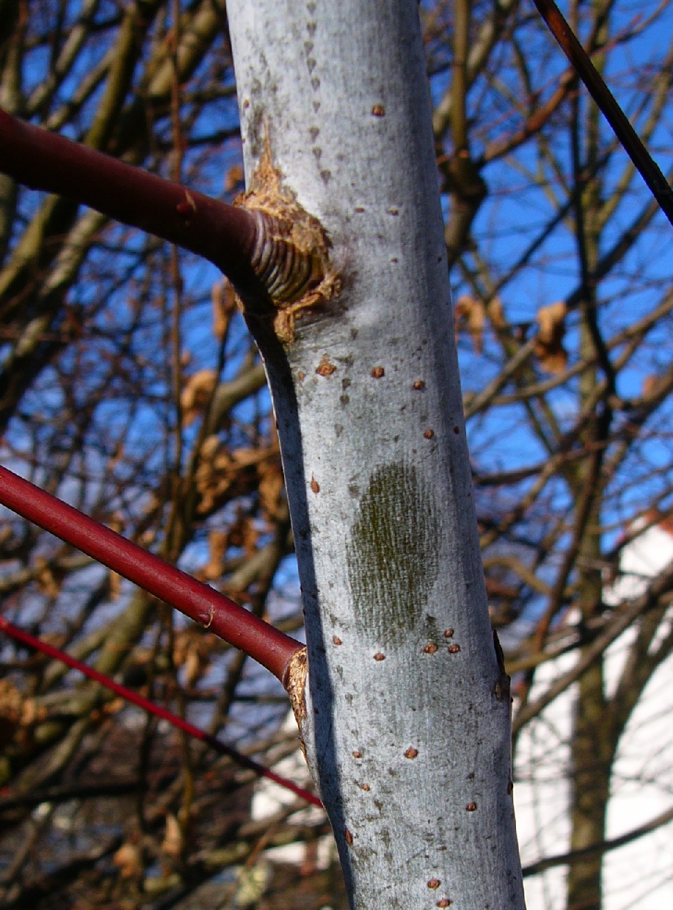 Bis 3 - 10 m hohe Bäume oder Sträucher Junge Zweige gelblich oder rotbraun, leicht glänzend, an der Basis brechend Größere Zweige mit hellem hechtblauem, abwischbarem