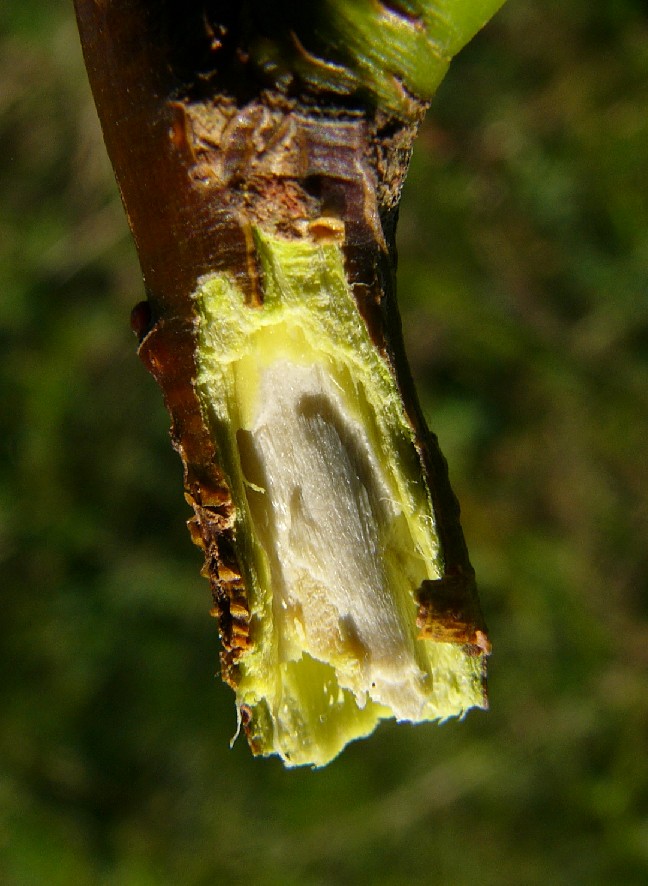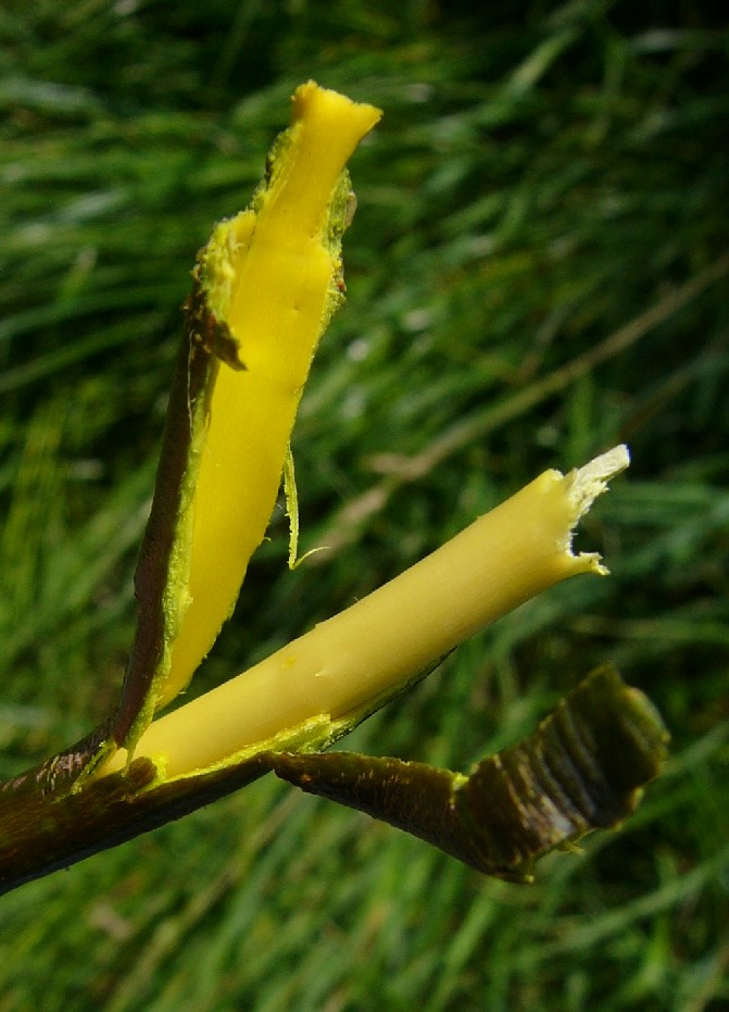 Rinde innen grünlich Zweige bräunlich oder grün, nicht bläulich-weiß bereift > Zweige nicht bläulich-weiß bereift