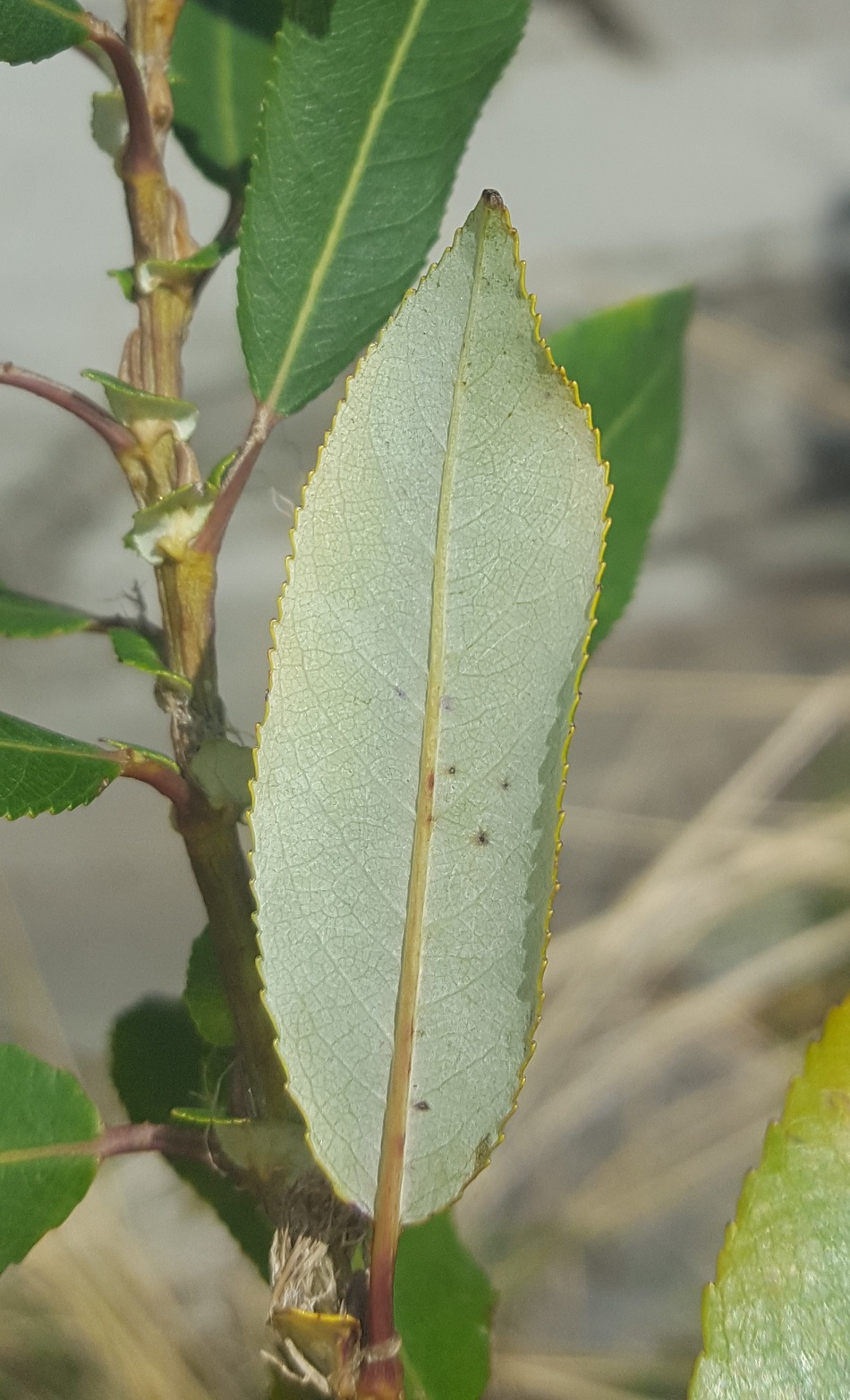 2 - 5 m hoher Strauch, seltener Baum Blattunterseite grün Drüsen am Blattstiel deutlich entwickelt, stiftförmig