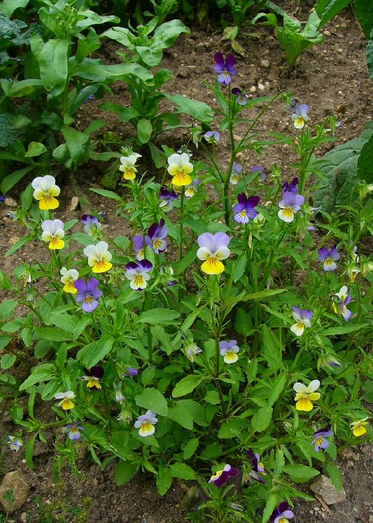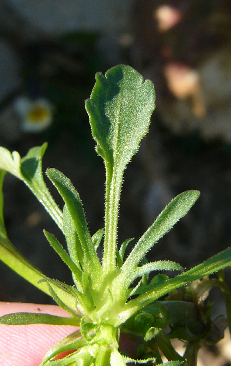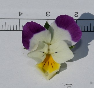 Pflanze 10 - 35 cm groß Blüten 1,5 - 3 cm groß oft dreifarbig Blüten deutlich größer als die Blüten von Viola arvensis ssp arvensis