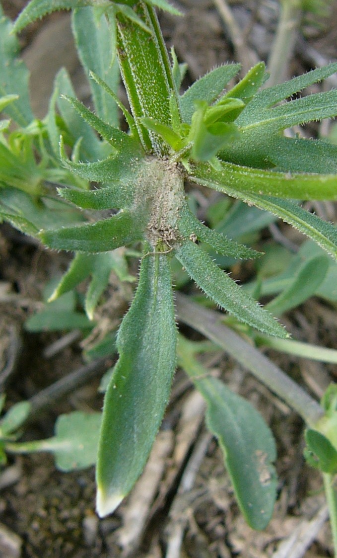 der Narbenkopfdurchmesser Kelchblätter lanzettlich, vorne spitz, Sporn 3 - 5 mm lang, wenig länger als die Kelchblattanhängsel, Stängel kahl oder kurz behaart, Vorblätter weit oberhalb der Mitte Stängelblätter gestielt, eilanzettlich bis breit eiförmig, gekerbt Nebenblätter handförmig fiederteilig, Endabschnitte länger als die seitlichen Endabschnitt der Nebenblätter lanzettlich oder mit